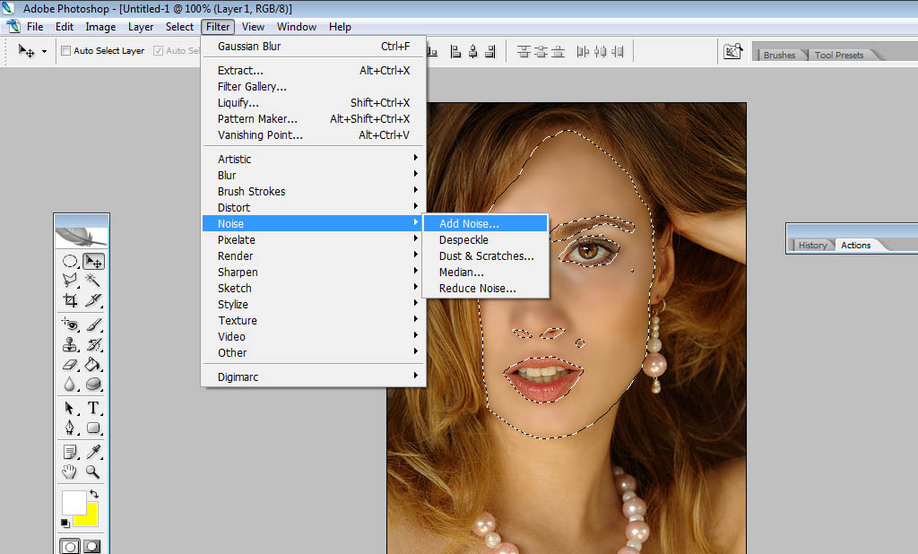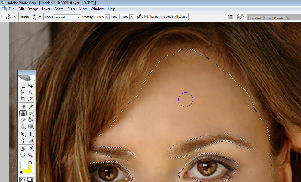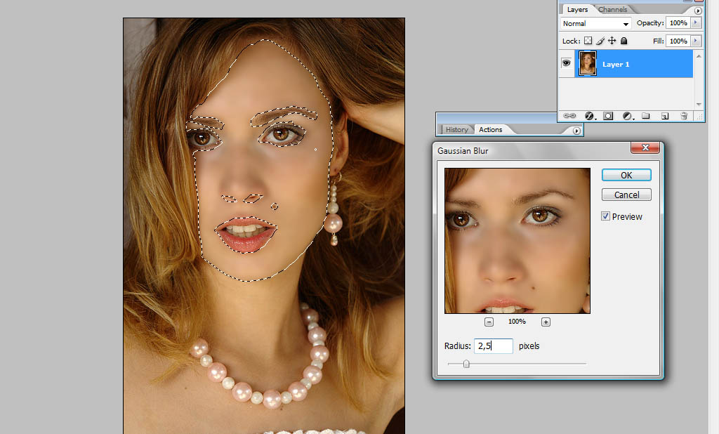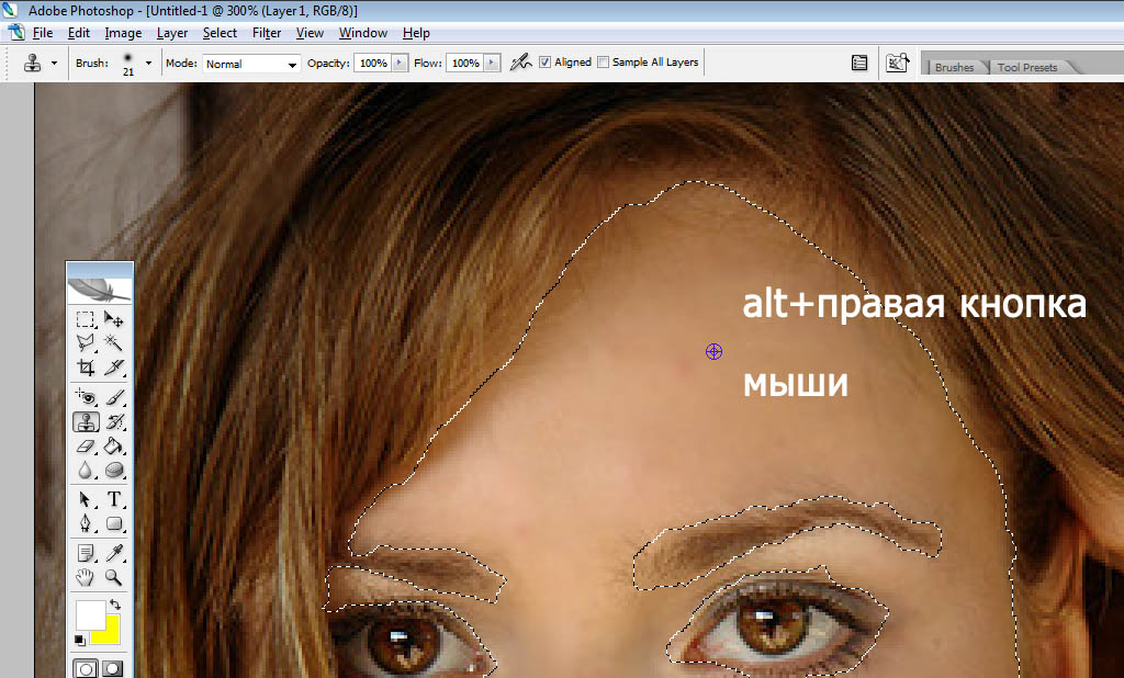 | Сегодня мы сделаем из обычного фото изюминку добавляя разные эффекты. 1) Открываем фото ![]() 2) "Качество кожи" не так хорошо, так что придётся поправить изъяны. Нажимаем на клавишу "Q" чтобы перейти в режим маски. 3) Выбираем инструмент Кисть/Brush и начинаем обводить лицо(радиус выбираете под себя, чтобы было удобнее). Должно быть примерно так: ![]() 4) Далее жмём снова "Q". Выбираем инструмент Magic Wand Tool, правая кнопка мыши, Select Inverse ![]() 5) Теперь мы можем работать с самой кожой. Если на коже вы заметили какие-то прыщики, морщинки выбираем инструмент clone stamp tool. Повторяете за мной: ![]() Закрашиваем "дефектное место" ![]() Итак поправляем все недостатки. 6)Далее: Filter, Blur, Gaussian blur. ![]() Радиус 2,5. ![]() 7)Далее Filter, Noise, Add Noise. ![]() Amount-2 Uniform ![]() 8) Clone stamp tool, правая кнопка мыши, Deselect 9) Применяем несколько эффектов: Image, Adjustments, Brightness/Contrust ![]() 10) Выбираем настройки под себя. Я выбрал такие: ![]() 11) Впринцапи всё. Вот что получилось: ![]() А вот что было до нашей работы: ![]() | |